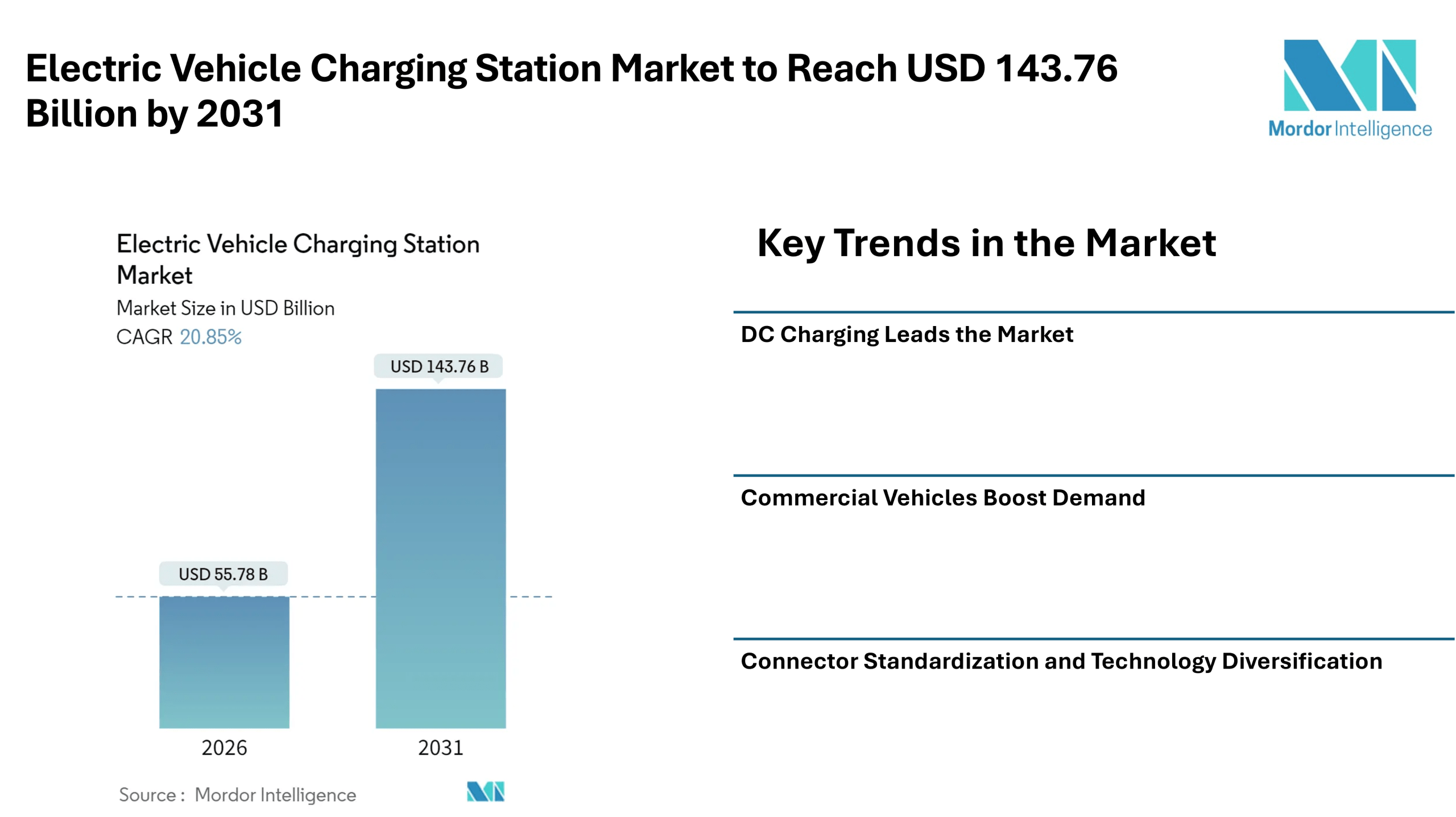 The global Electric Vehicle Charging Station market size is on a strong growth trajectory as the adoption of electric vehicles accelerates worldwide. According to Mordor Intelligence, the market was valued at approximately USD 55.78 billion in 2026 and is expected to expand to around USD 143.76 billion by 2031, growing at a robust CAGR during the forecast period. This expansion reflects growing demand for reliable charging infrastructure, advancing battery technologies, supportive government policies, and investments in both public and private charging networks.