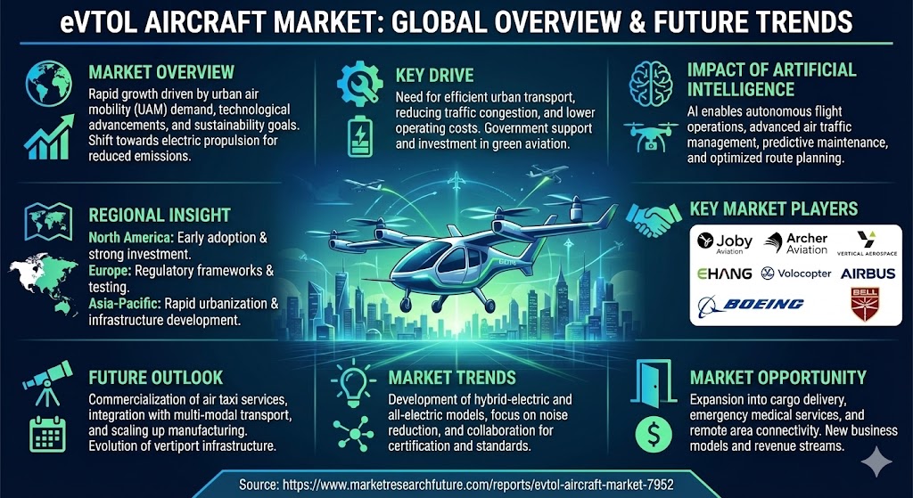 The eVTOL aircraft market is not just a futuristic idea—it is rapidly becoming a tangible solution to contemporary transportation challenges. With continued technological advancement and infrastructure development, eVTOLs are poised to become a key element in achieving smart, sustainable, and efficient urban mobility worldwide.